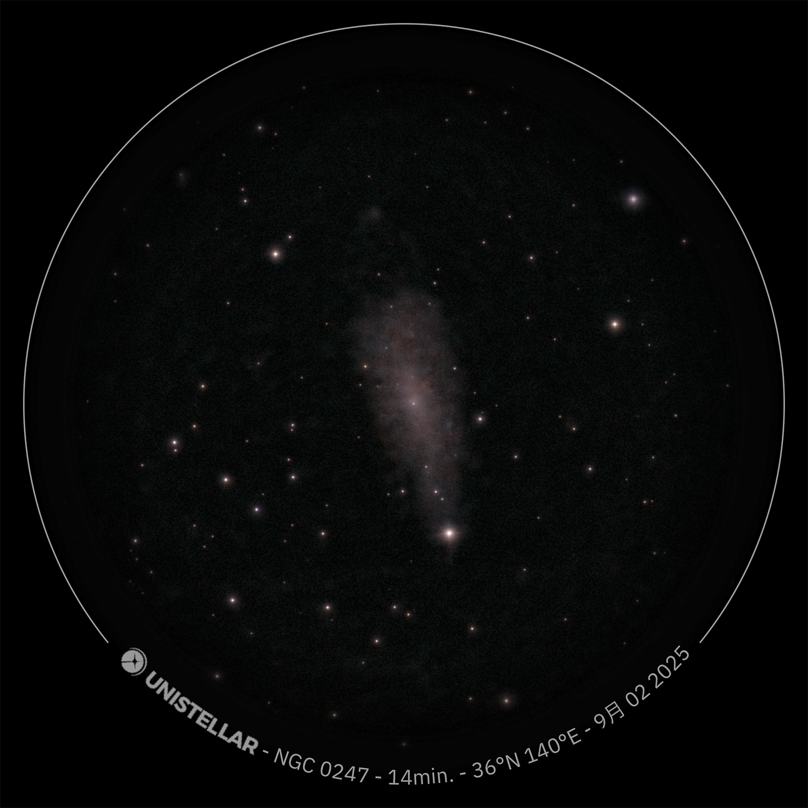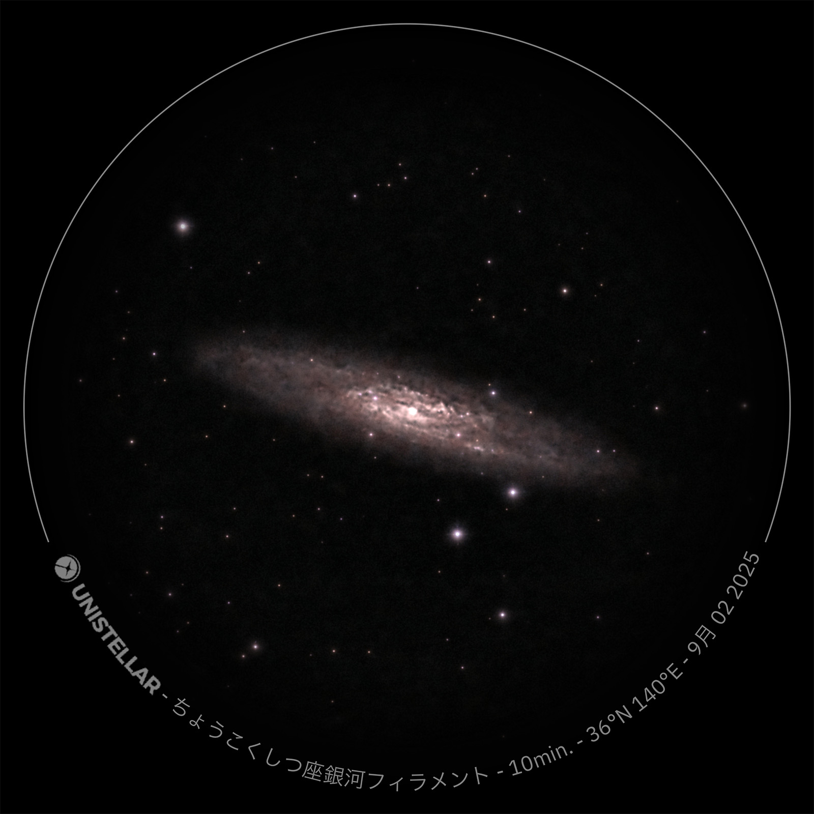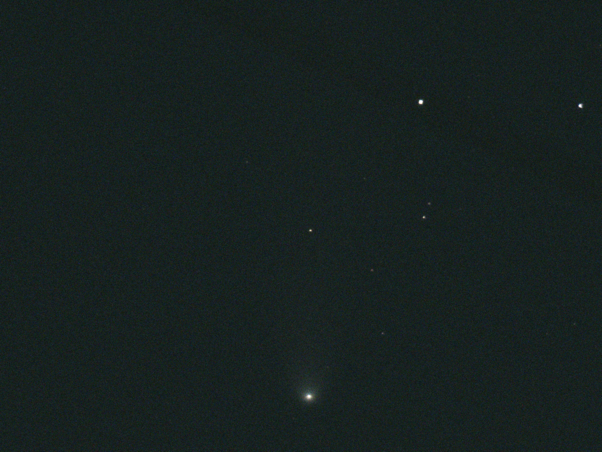 非常にすっきり晴れました。見頃になっているレモン彗星(C/2025 A6)をEVSCOPE2で、東京23区内の自宅から撮影しました。光学望遠鏡の口径100mmでは頭部付近と淡い尾が見えていました。太陽に接近してダストの尾が立派になりました。エンハンスドビジョンを使用しない画像は、光学望遠鏡で見たイメージに近いので撮影しておきました。