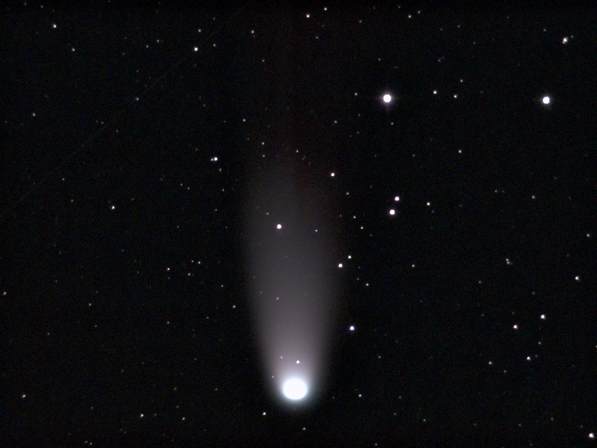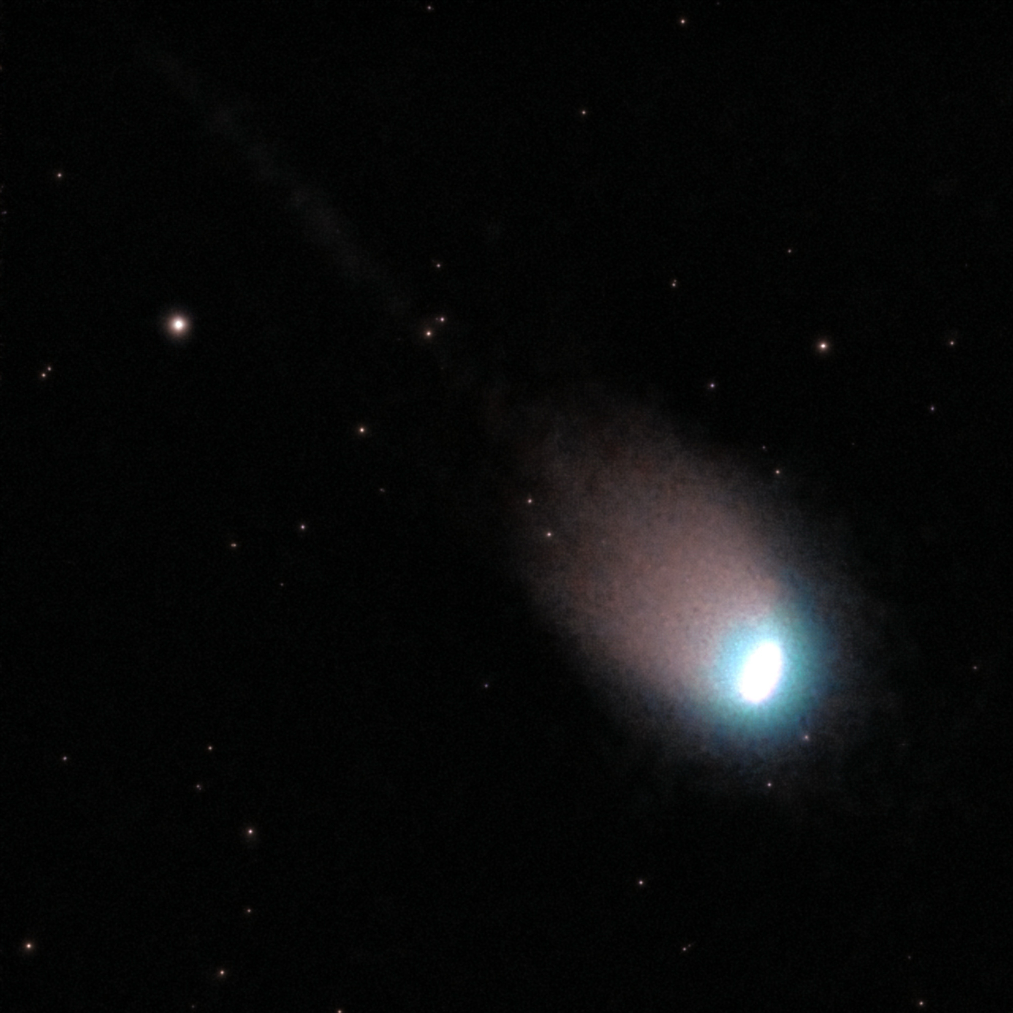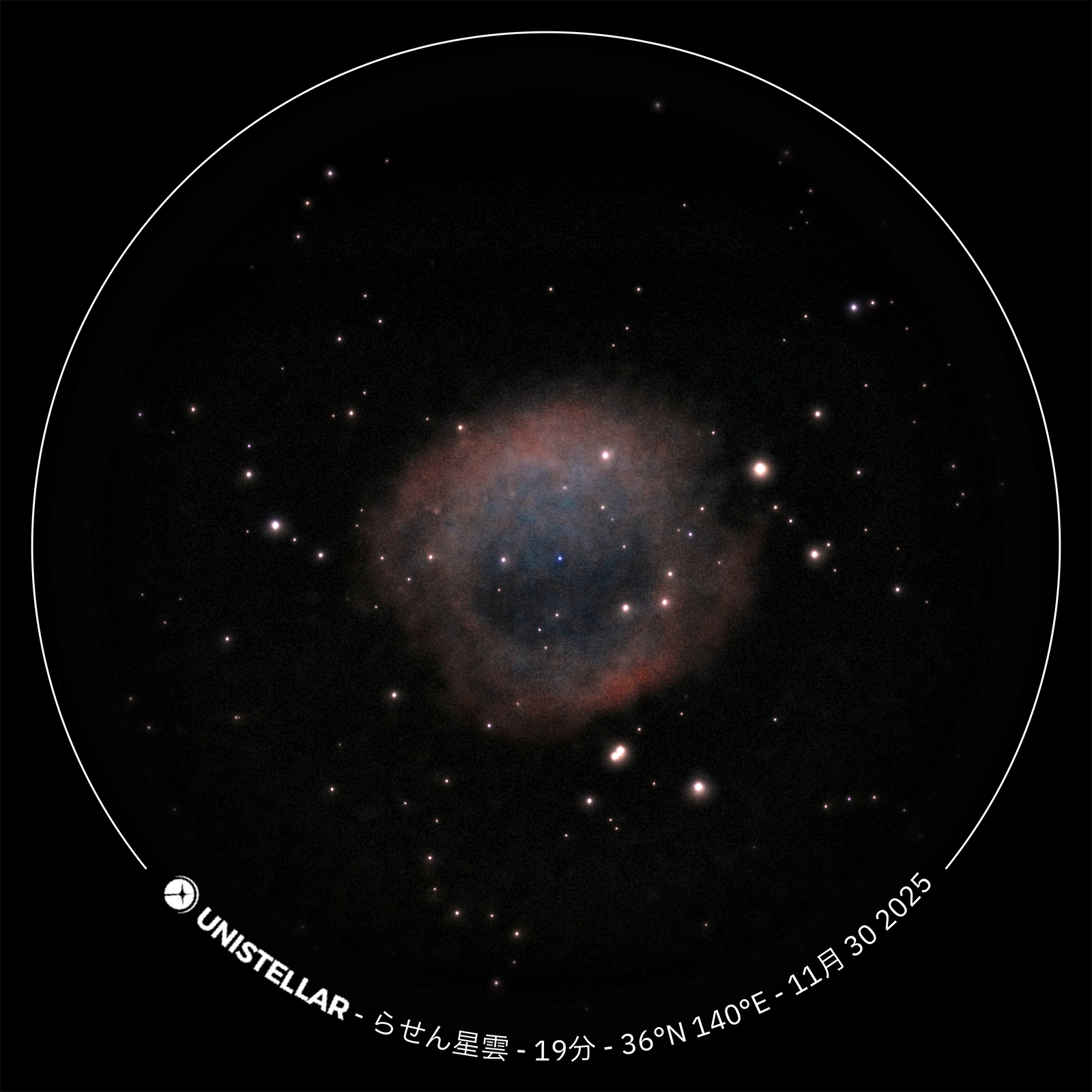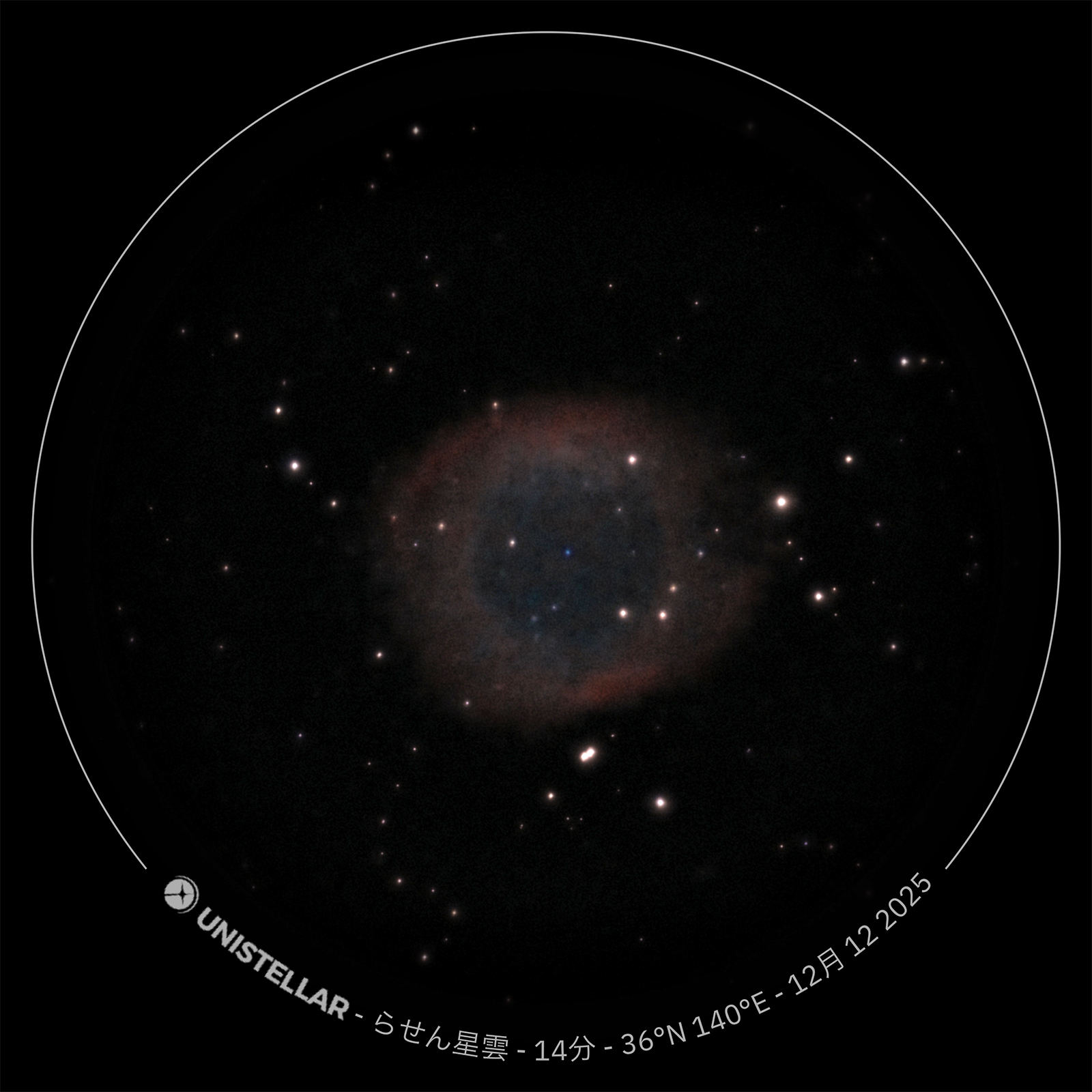 非常にすっきり晴れました。見頃になっているレモン彗星(C/2025 A6)をEVSCOPE2で、東京23区内の自宅から撮影しました。光学望遠鏡の口径100mmでは頭部付近と淡い尾が見えていました。太陽に接近してダストの尾が立派になりました。エンハンスドビジョンを使用しない画像は、光学望遠鏡で見たイメージに近いので撮影しておきました。