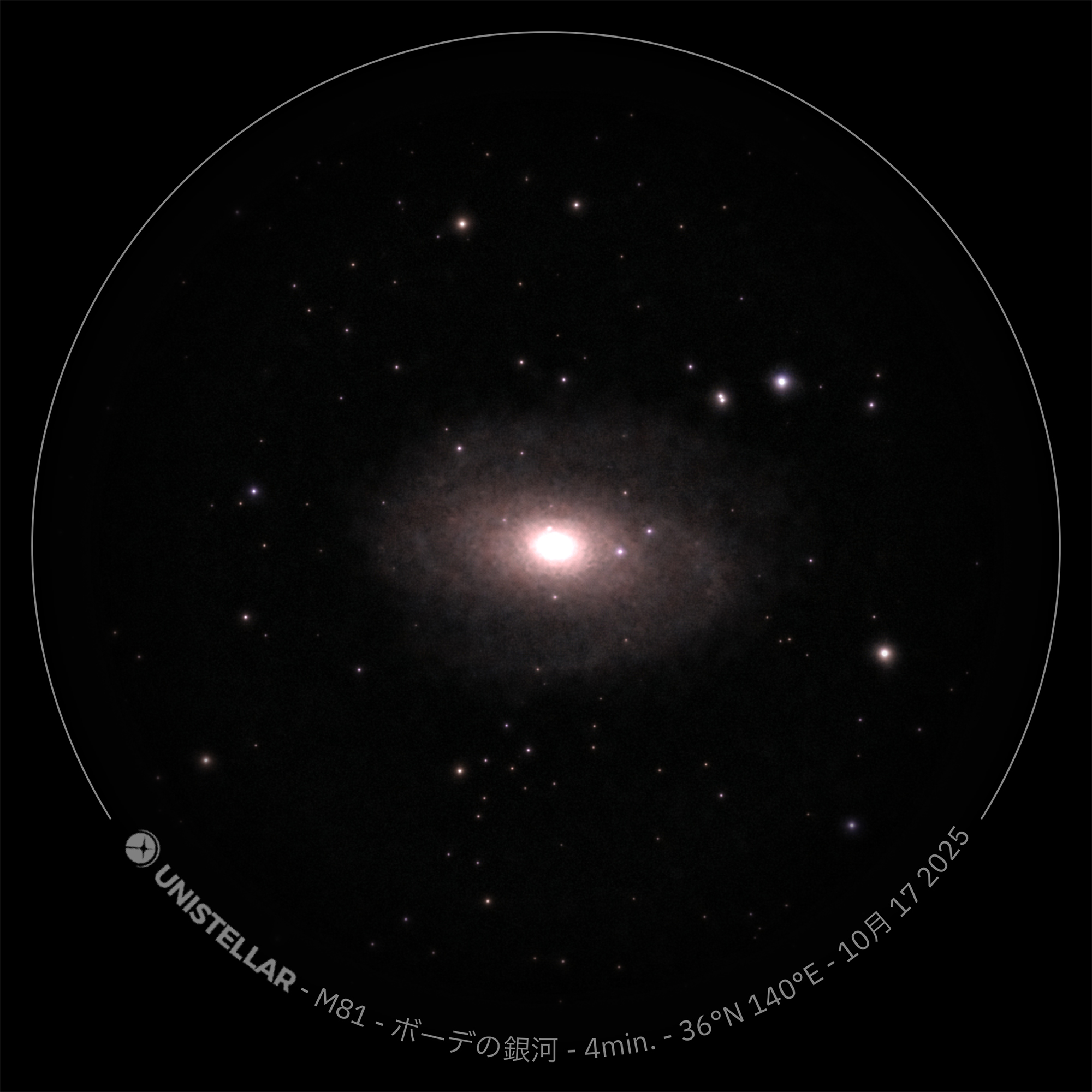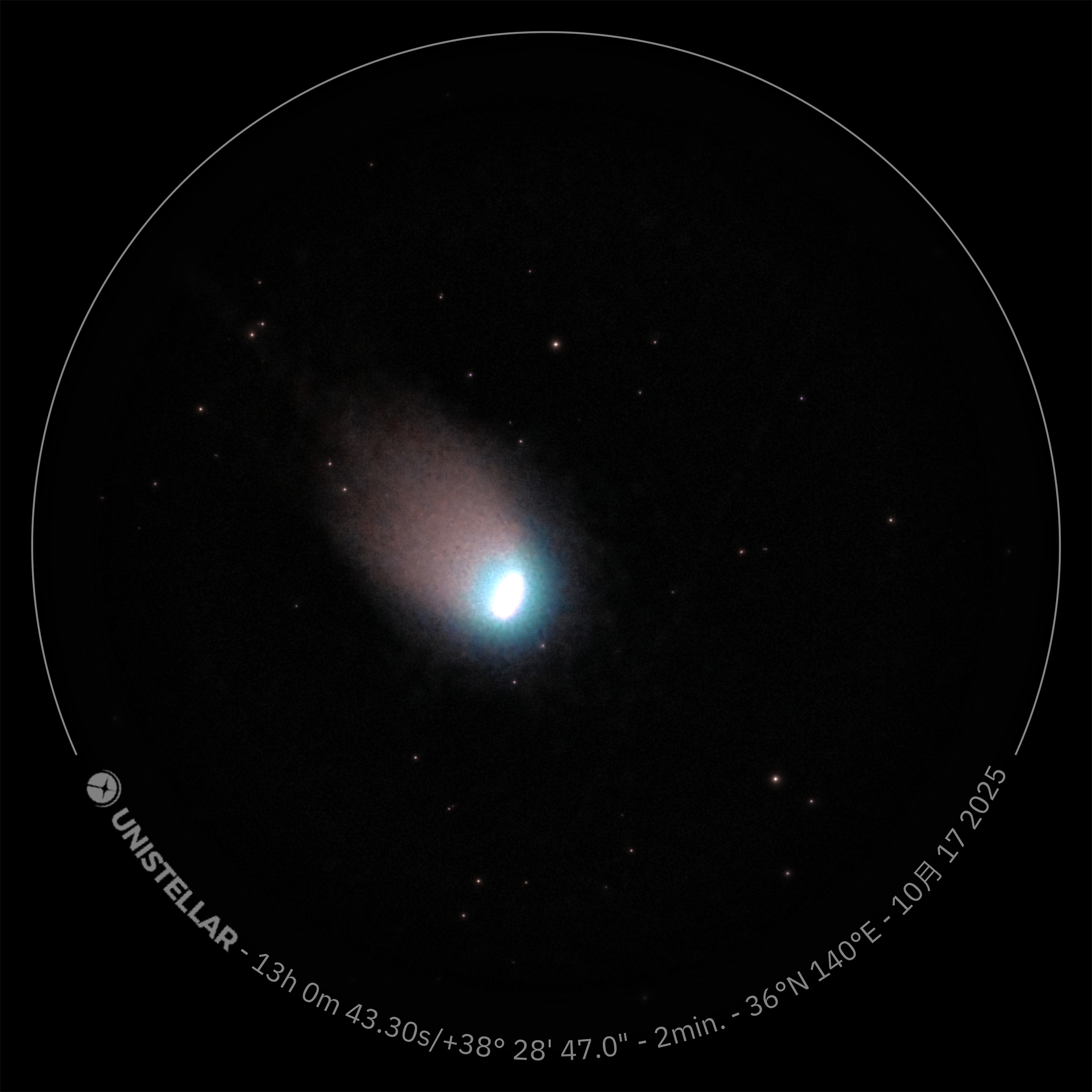 やっとすっきり晴れました。地球接近中のレモン彗星(C/2025 A6)をEVSCOPE2で、東京23区内の自宅から撮影しました。口径50mmの双眼鏡で3等星であるりょうけん座のコルカロリを視野に入れると、左下側にレモン彗星(C/2025 A6)が即確認できました。頭部付近と尾が少し見えていました。そこで、EVSCOPE2を設置して撮影したのが添付したものです。なんと、VIVID VISIONも機能し、左上方に伸びるイオンテールも写っています。導入の確認で撮影したM81も添付します。