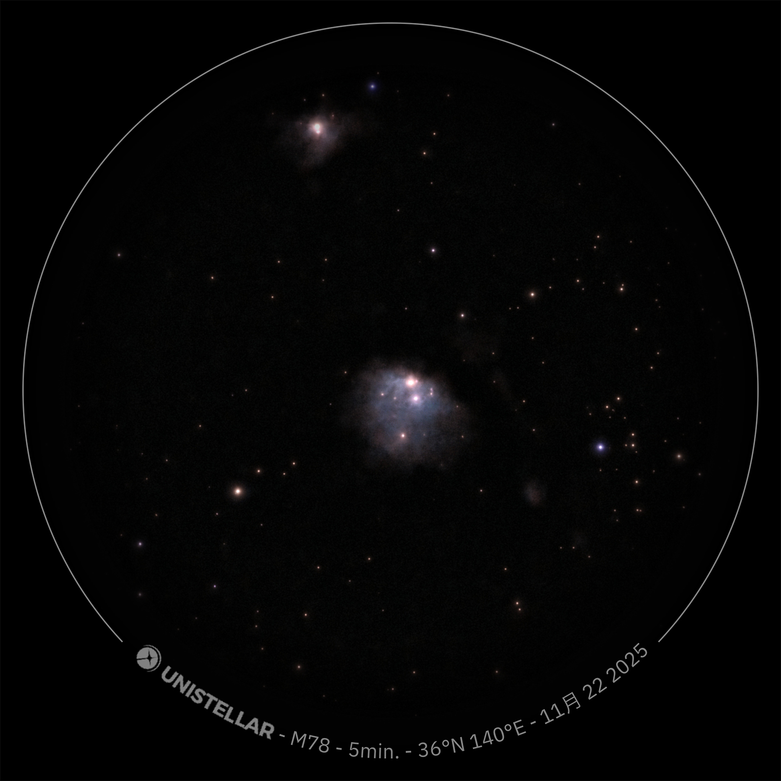 eVscope1は、視野が明るく、星像もデジタル臭い。虫メガネで天体写真を見ているような感じ。