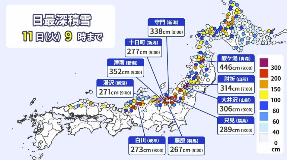 | 甲府(山梨県) | 114cm | 1894年の観測開始以来最高 |