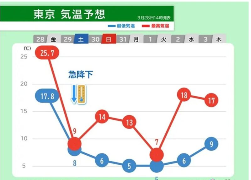 一旦暖かくなるが・・・3月3日~7日の週に寒の戻り?!