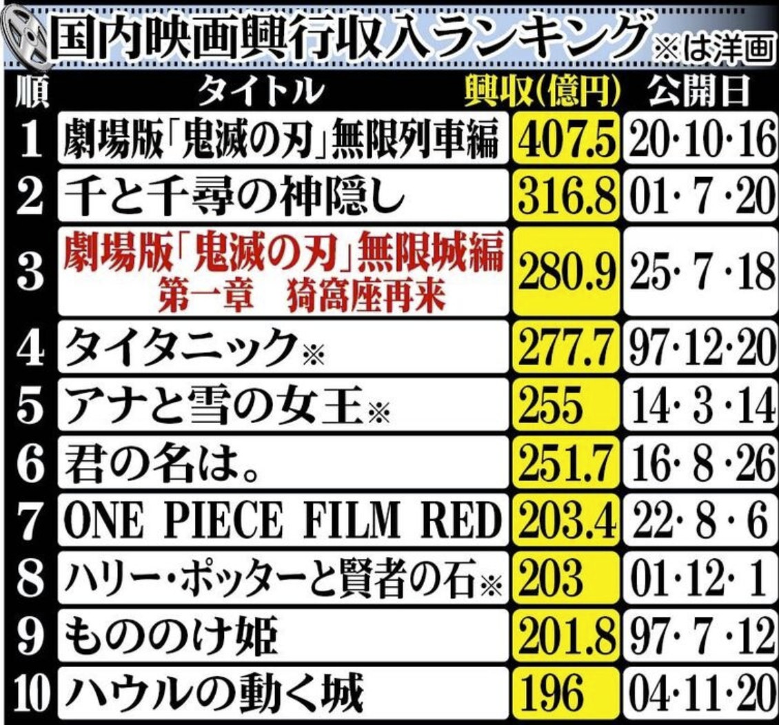 目次1 3月7日~ 第17弾2 2月20日~ SCREENX・ULTRA 4DX3 2月8日 IMAXで『劇場版「鬼滅の刃」無限城編』を鑑賞4 IMAX独自の1.43:1版 「鬼滅の刃」無限城編5 アニメ映画賞にノミネート 第83回ゴールデン・グローブ賞 →受賞ならず5.0.1 「劇場版『鬼滅の刃』無限城編 第一章 猗窩座再来」の世界興行収入 日本映画として初めて1000億円を突破5.0.2 日本映画世界歴代興行収入5.0.3 入場者特典5.1 2月20日~ 来場御礼入場者特典 第16弾5.2 2月6 ...