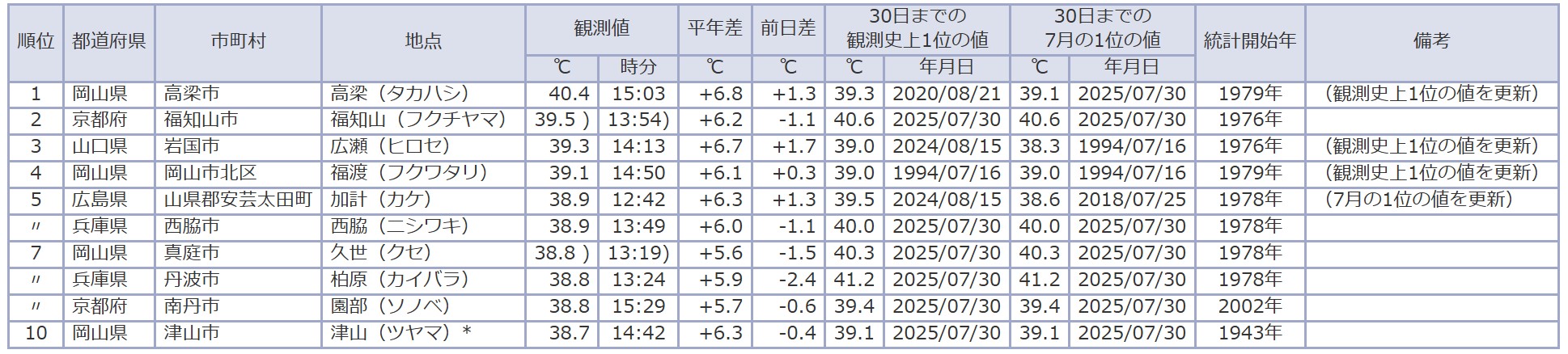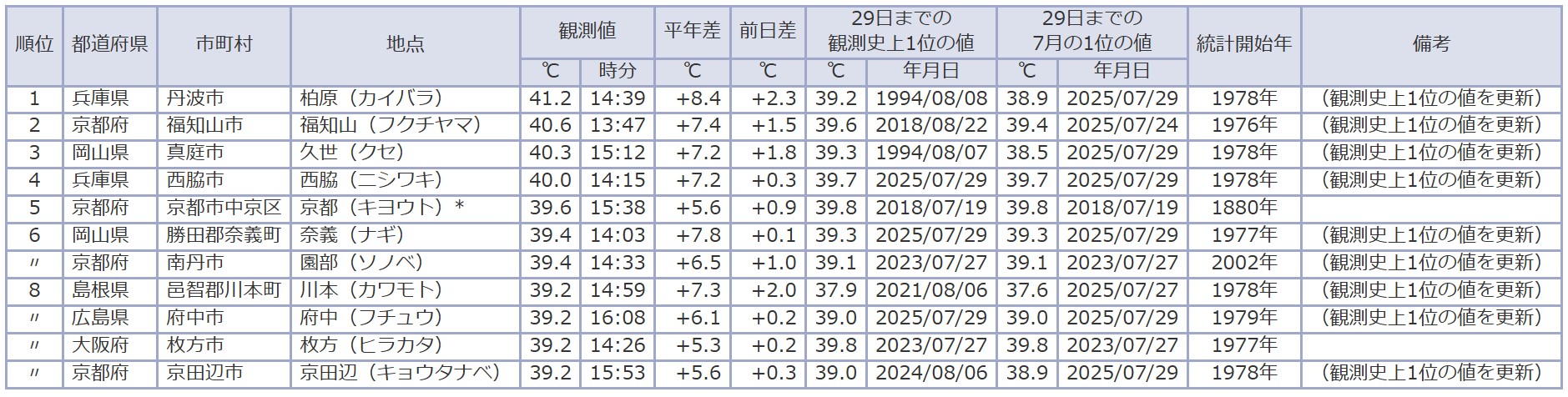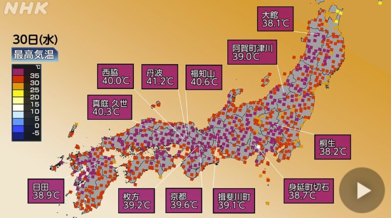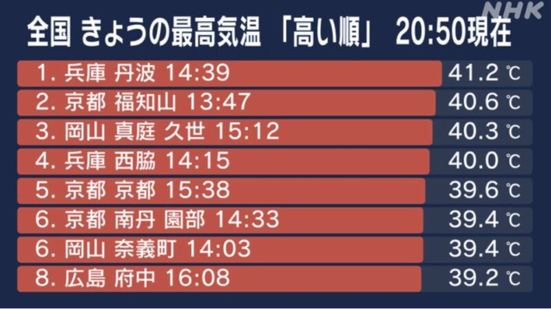 7月30日 兵庫 丹波で41.2度 国内最高更新