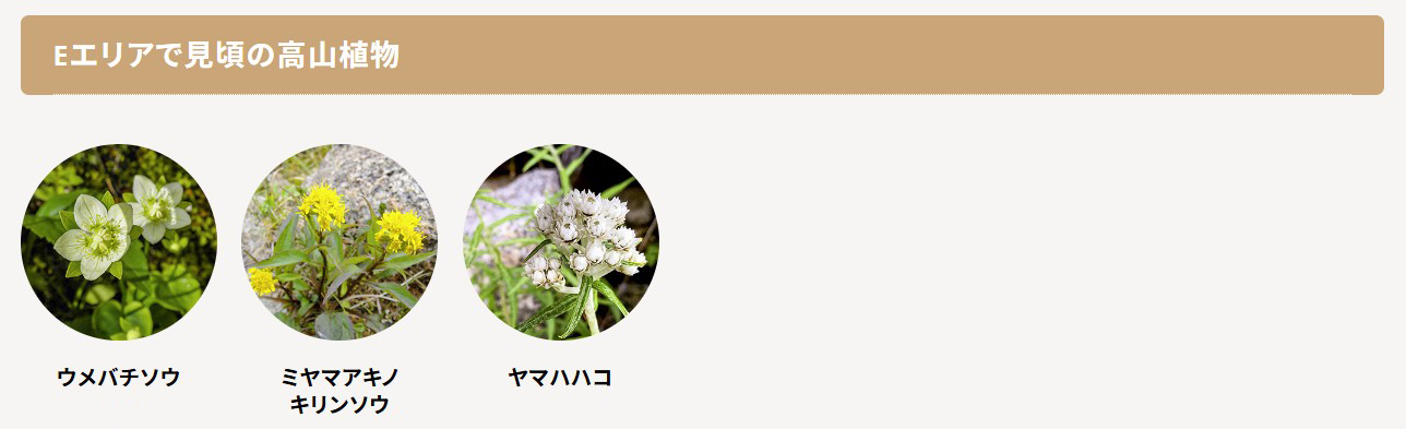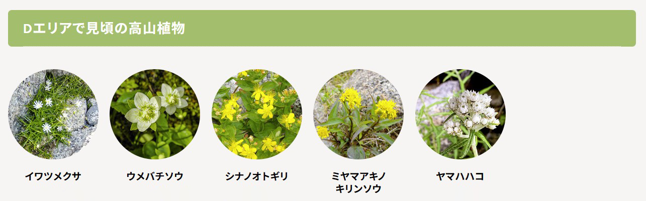 Cエリア:ムカゴトラノオ ミヤマコウゾリナ ハクサンボウフウ ミヤマゼンコ