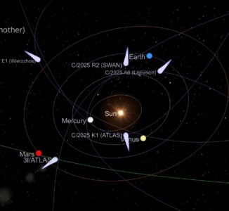 目次1 C/2026 C1(Tsuchinshan)彗星:基本情報 以前の名称:A11yzTN2 近日点通過前後は 南半球で見られます3 2028年12月になると 北半球でも見られます C/2026 C1(Tsuchinshan)彗星:基本情報 以前の名称:A11yzTN 種類:長周期彗星候補 近日点通過の予想時期:2028年11月7日 近日点距離の予想値:約1.1〜1.2AU ( ヘールボップ彗星 0.914 AUに近い ) 軌道傾斜角:約100° 核の大きさ:約20〜40k ...