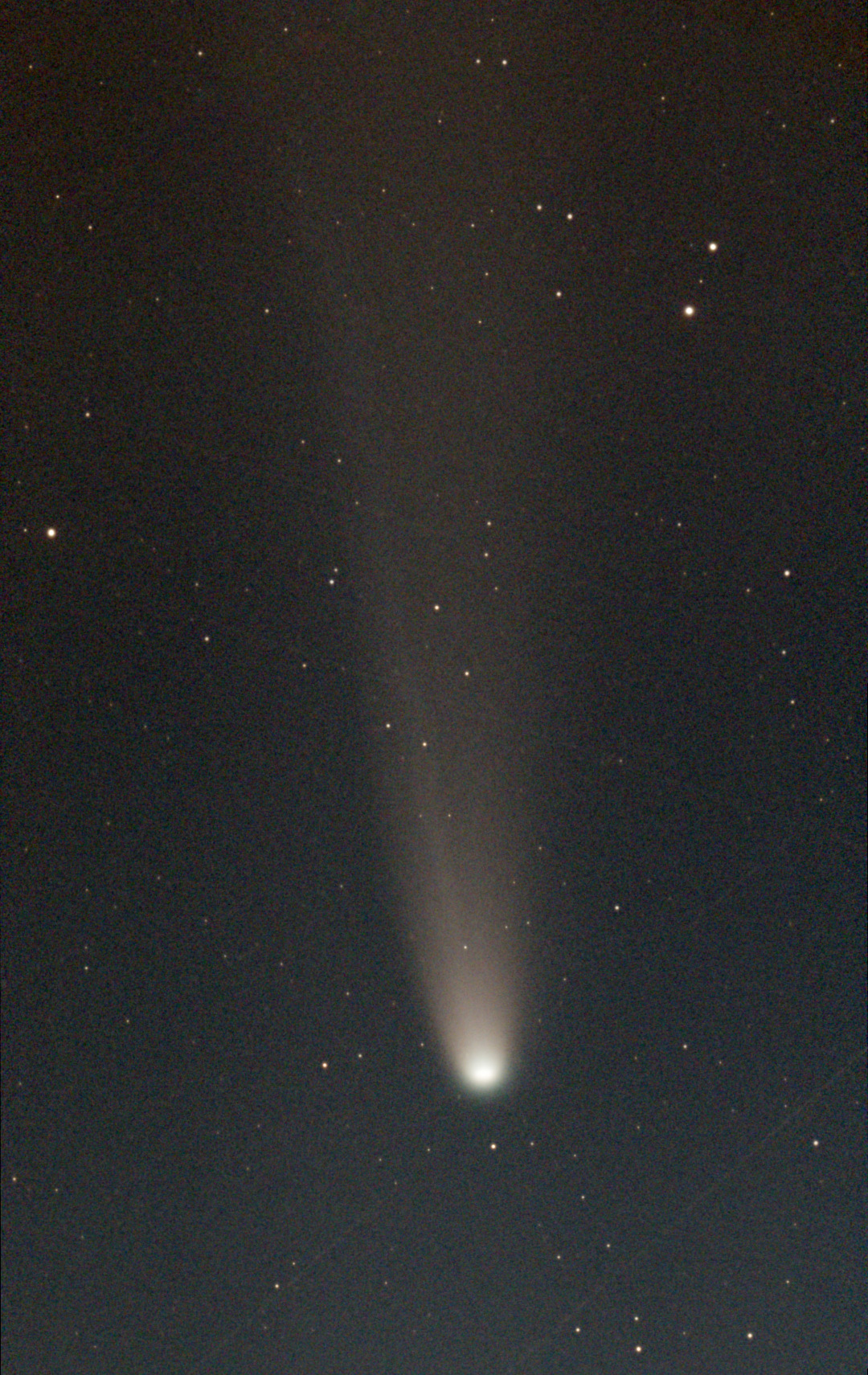 見頃を迎えている、レモン彗星は大都会の空では、肉眼ではみえませんが、口径50mmの双眼鏡では彗星頭部と淡い尾が少し見え、口径100mmの光学望遠鏡では、もう少し淡い尾が伸びているのがわかります。写真では、立派な彗星の姿が捉えられます。