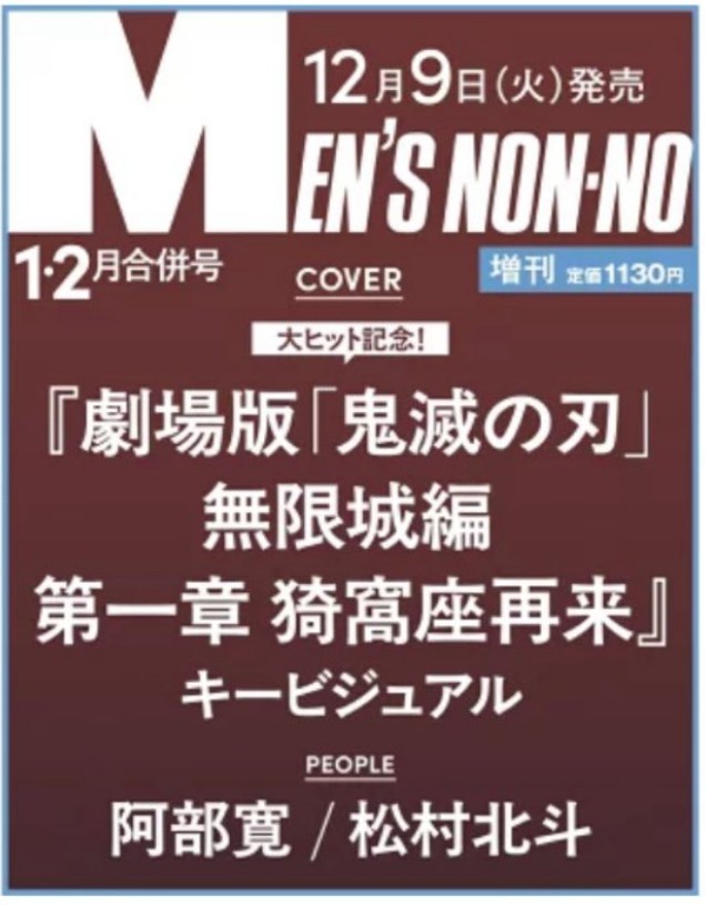 メンズノンノは2026年創刊40周年を迎えます! 記念すべき周年スタート号にふさわしく、「2025年はこの作品で始まりこの作品で終わる1年だった」と言っても過言ではないほどの熱狂を巻き起こした、『劇場版「鬼滅の刃」無限城編 第一章 猗窩座再来』キービジュアルが増刊カバーを彩ります。さらに特別付録として、アニメ「鬼滅の刃」2026年卓上カレンダーが付属。さらにはキャストインタビューをはじめ、注目企画がめじろ押しの豪華タブロイドペーパーもお見逃しなく!