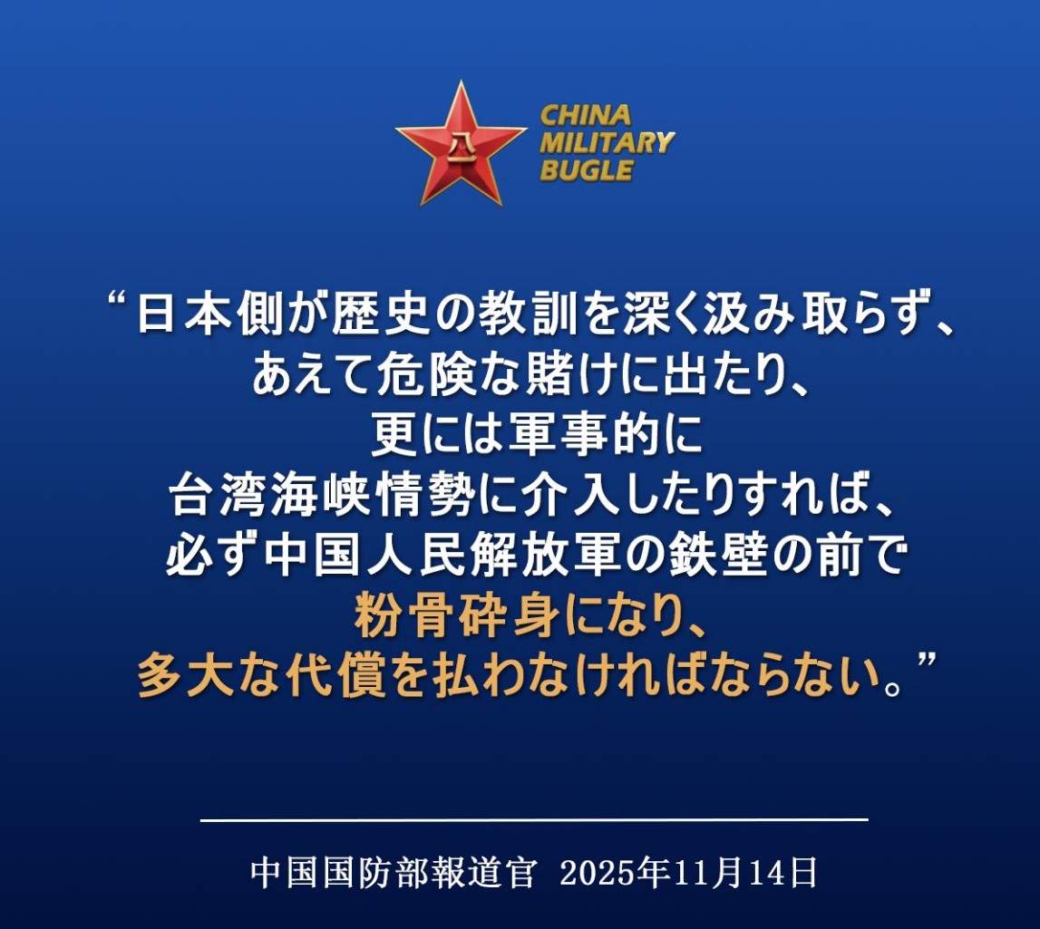 中国の薛剣(せつけん)駐大阪総領事による、高市首相へのテロ予告    中国驻大阪总领事薛建对日本首相高市发出恐怖威胁