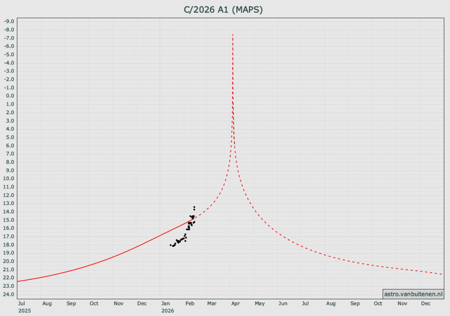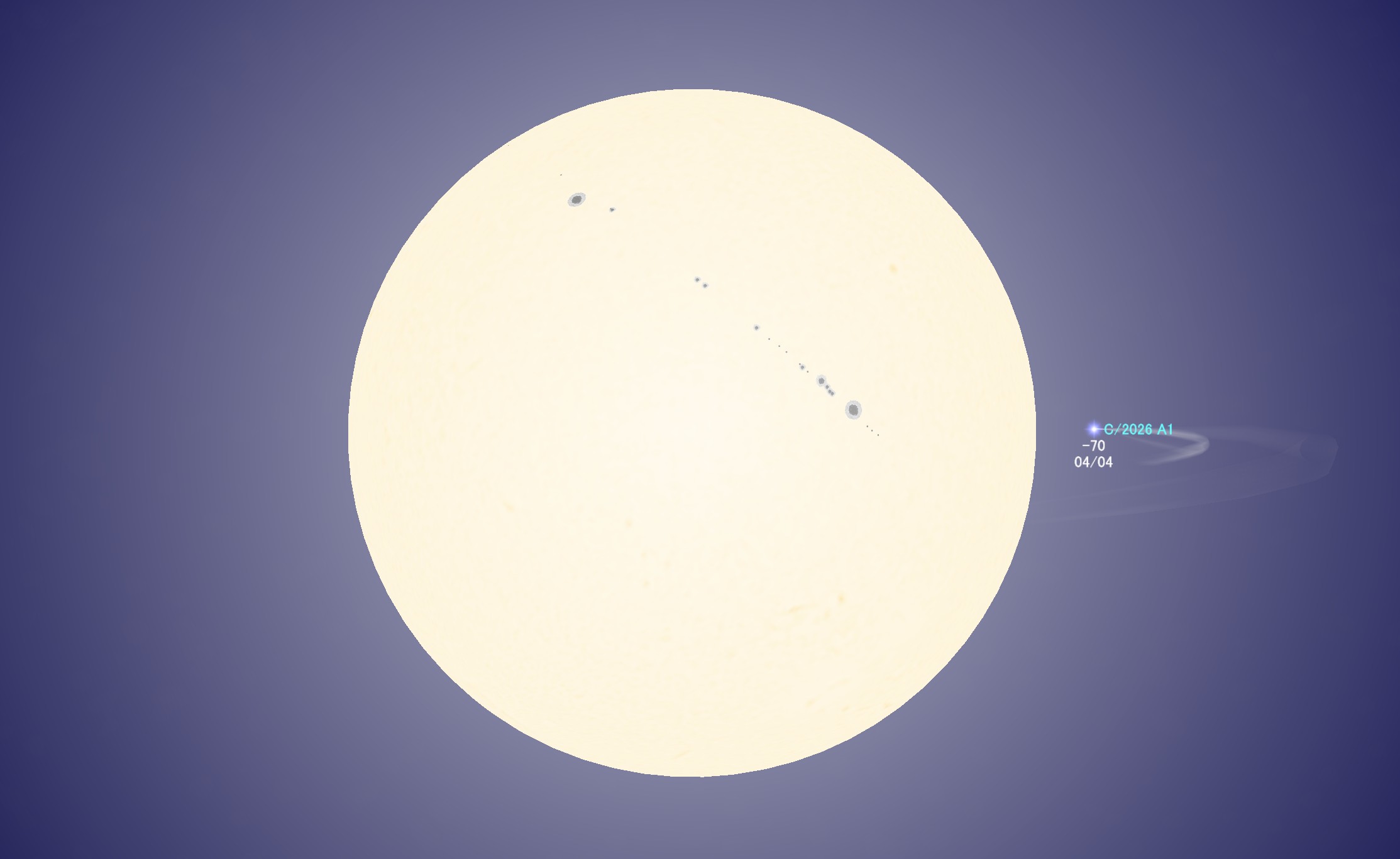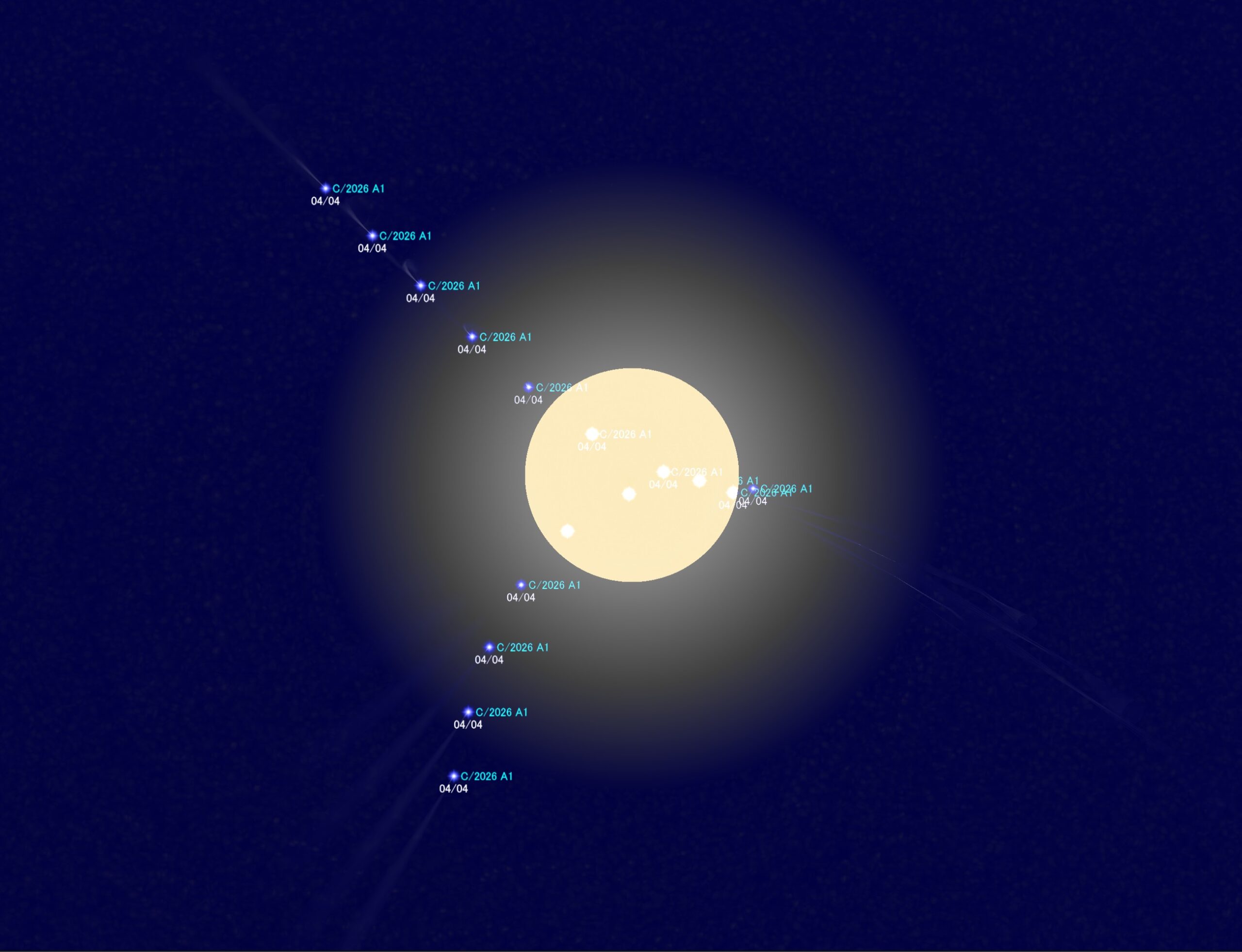 C/2026 A1 (MAPS) 太陽最接近4/4 地球最接近4/5 HOME > 天文関連 > 天文関連 C/2026 A1 (MAPS) 太陽最接近4/4 マイナス7等級 \ 地球最接近4/5 2026年2月16日 目次1 2月15日2 ヨーロッパ方面正午前後 近日点通過時 マイナス7等級3 地球最接近4/5 2月15日 ヨーロッパ方面正午前後 近日点通過時 マイナス7等級 地球最接近4/5 -天文関連 -C/2026 A1 (MAPS) 太陽最接近4/4 地球最接近4/5
