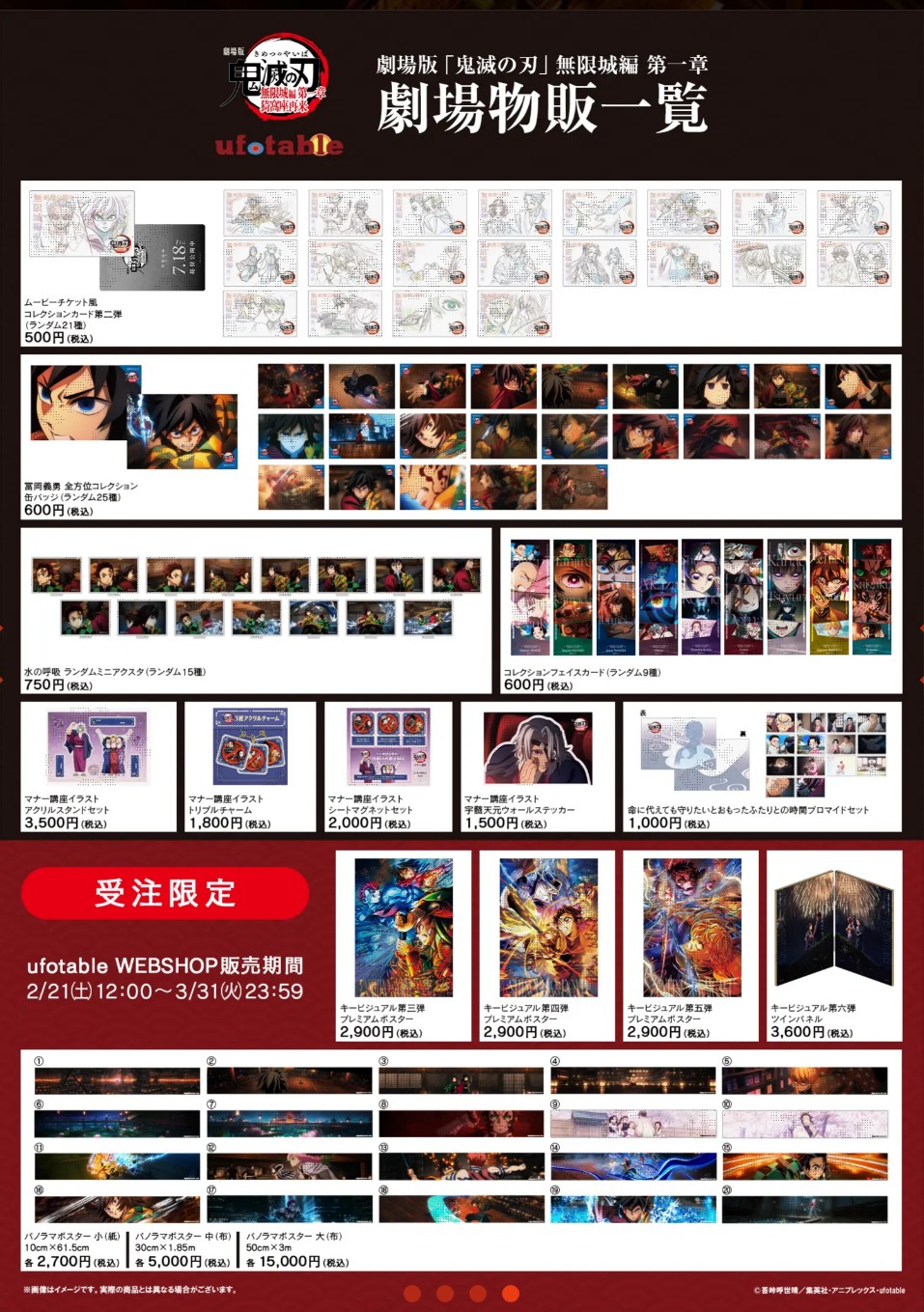販売期間は2月21日正午から「ufotableWEBSHOP」にて販売開始。ufotable関連店舗でも2月21日より発売され、劇場では一部商品を3月中旬より発売予定