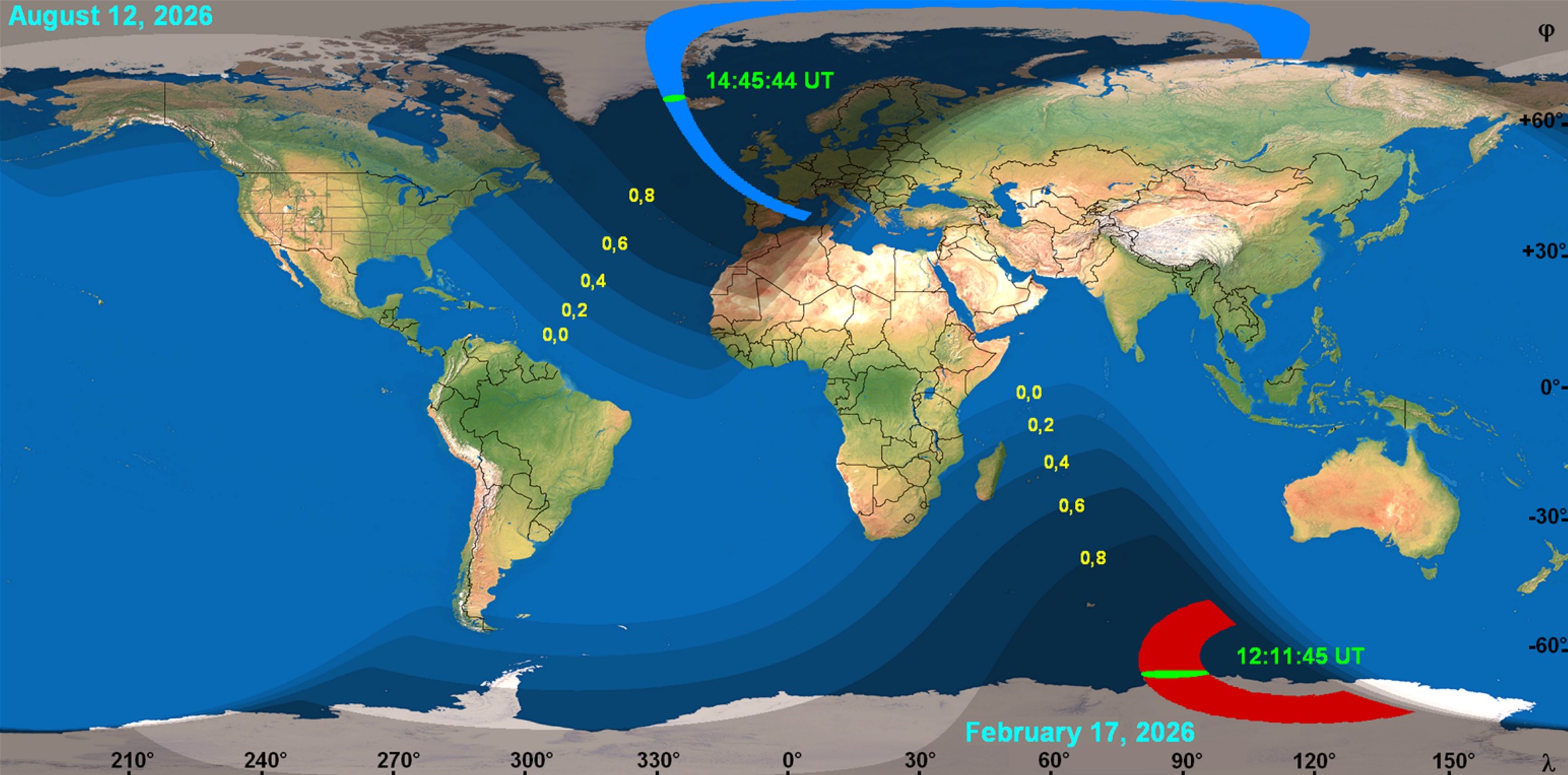 2026年の日食 HOME > 天文関連 > 天文関連 2026年の日食 2026年2月19日 目次1 2月17日 南極大陸で金環日食1.1 南アフリカで撮影された 部分日食2 8月12日 アイスランド・スペインで皆既日食 2月17日 南極大陸で金環日食 南アフリカで撮影された 部分日食 8月12日 アイスランド・スペインで皆既日食 -天文関連 -2026年の日食