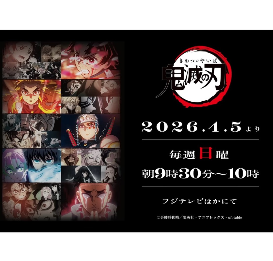 4月5日~鬼滅の刃 全編再放送 日曜 朝9時30分より放送